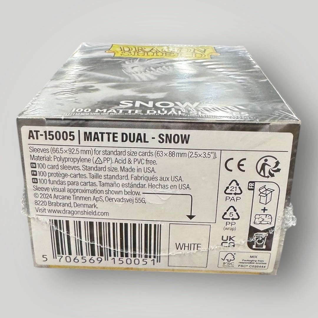 Premium card sleeves. 100 card sleeves. Comes in Snow color on backing of sleeves.