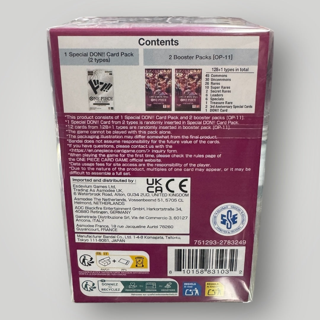 A Fist of Divine Speed double pack is set 7 OP-11. The case comes as a carrying case for your cards along side 2 booster packs and 1 Don card.