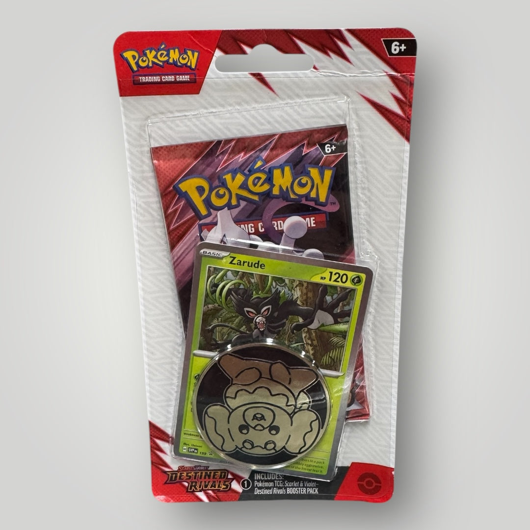 Destined Rivals booster pack, Zarude promo card and coin.