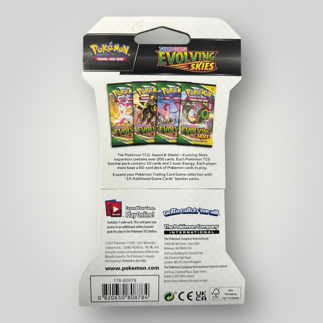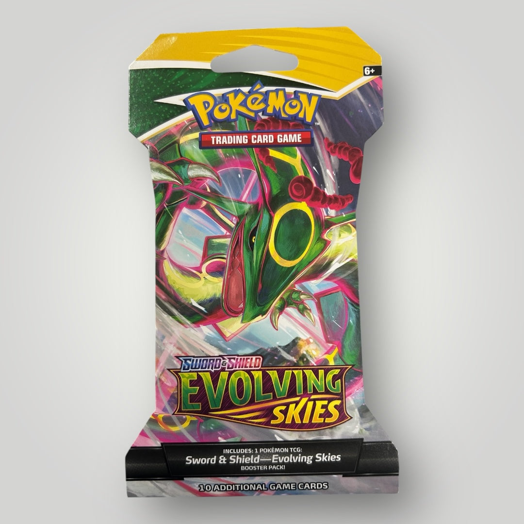 Each Sword & Shield—Evolving Skies sleeved booster pack contains 10 random cards.