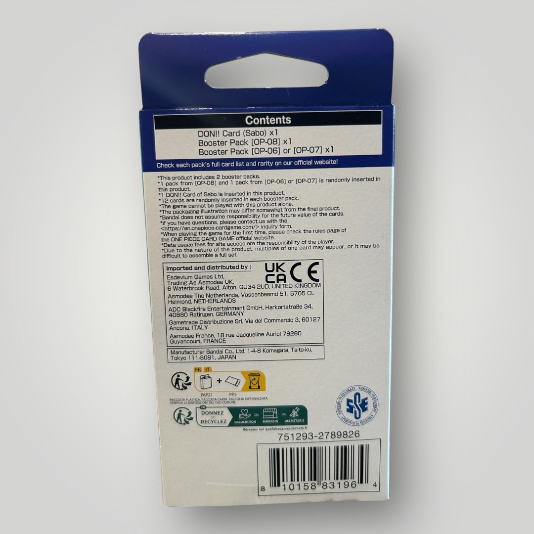 This set comes with 2 booster packs and a DON!! card featuring a special illustration of Sabo!