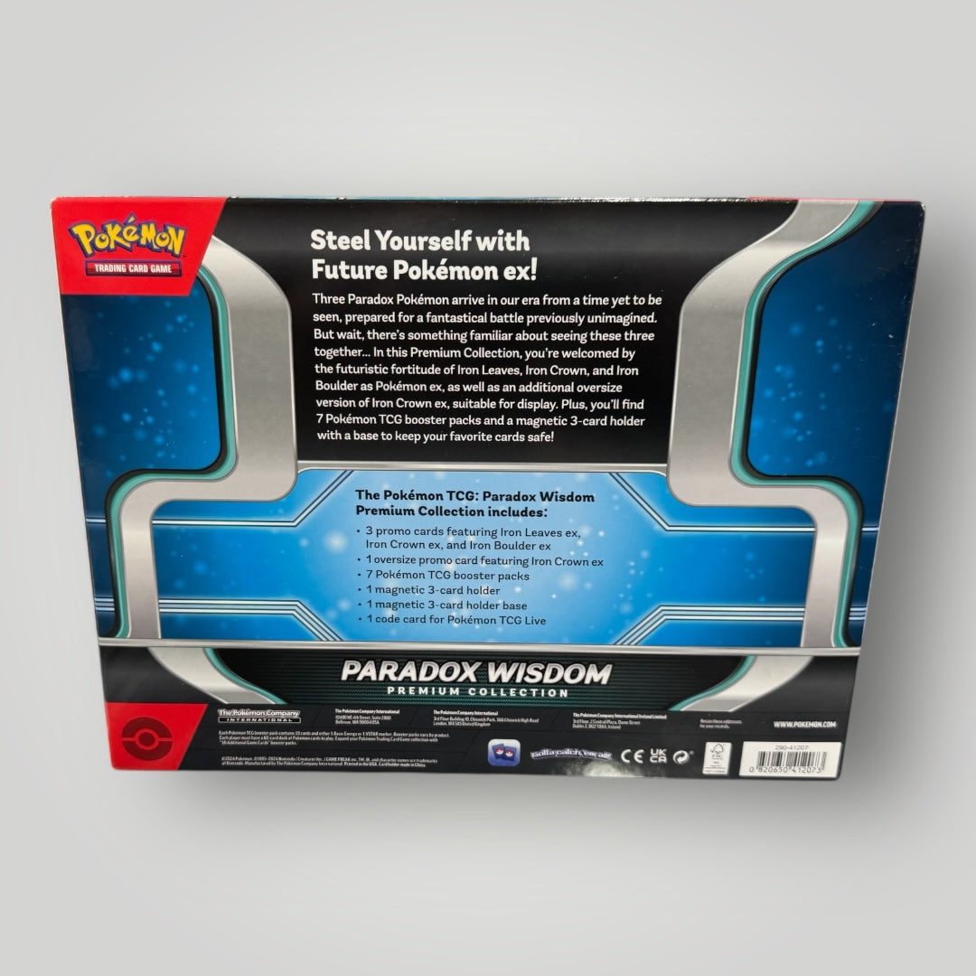 - 3 promo cards featuring Iron Leaves ex, Iron Crown ex, and Iron Boulder ex